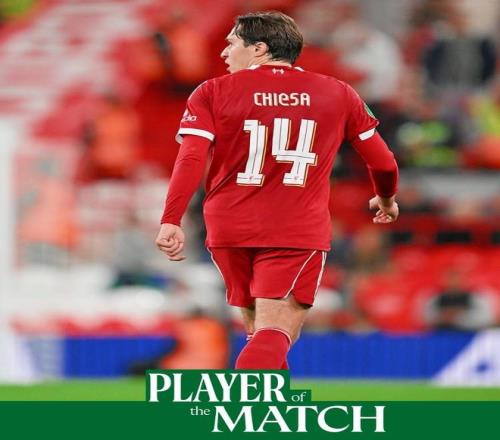 利物浦官方宣布,费代里科-基耶萨当选与南安普顿一役队内最佳球员。