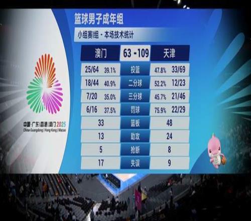 第十五届全国运动员男子篮球项目成年组的比赛正式拉开了帷幕。澳门全运男篮迎战天津全运男篮。经过4节较量,天津全运男篮以109-63大胜澳门队46分,斩获开门红,老帅周金利带队出征,赢得真是痛快,不一般就是不一般,球队的进步真是太大了。时德帅独砍12分10篮板。