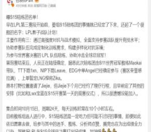 S15陪练团名单爆料:教练茂凯,Leave、Angel等参与其中